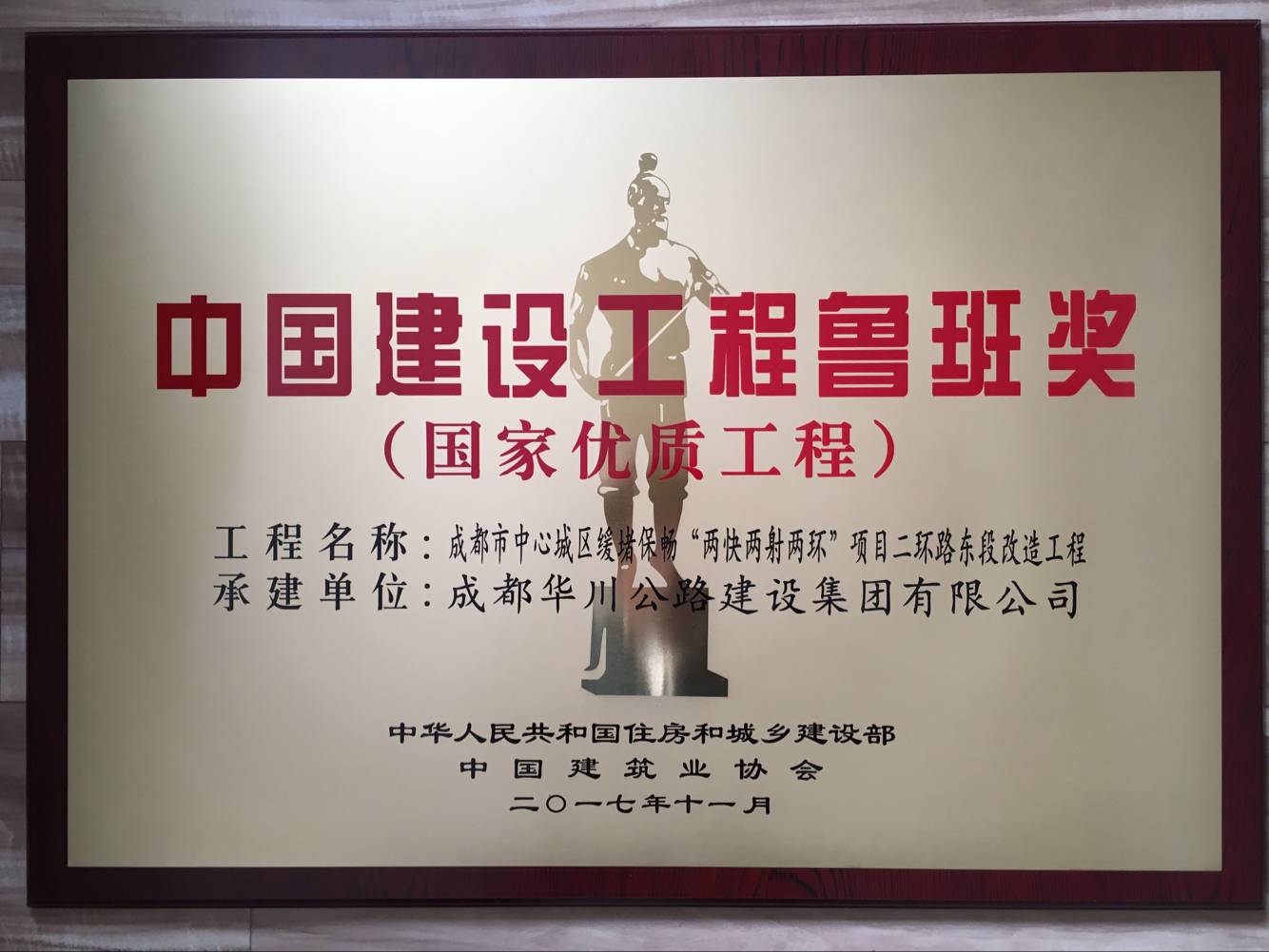11月5日至7日,紀念魯班獎創(chuàng)立30周年暨2016~2017年度創(chuàng)精品工程交流會在北京舉行,會上宣讀了《住房和城鄉(xiāng)建設部關于2016~2017年度中國建設工程魯班獎(國家優(yōu)質(zhì)工程)獲獎單位的通報》,集團承建的“成都市中心城區(qū)緩堵保暢‘兩快兩射兩環(huán)’項目二環(huán)路東段改造工程”榮獲2016~2017年度中國建設工程魯班獎。