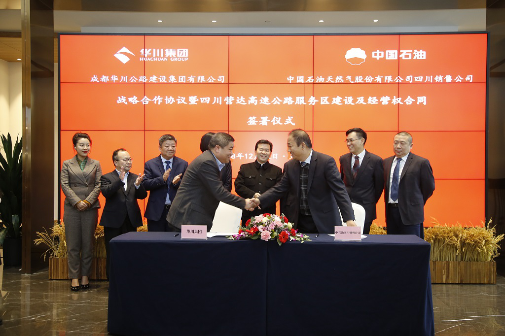 12月12日下午,集團與中石油四川銷售公司戰(zhàn)略合作協(xié)議暨營達(dá)高速涌興、管村兩對服務(wù)區(qū)建設(shè)及經(jīng)營權(quán)協(xié)議簽署儀式在集團天府良倉農(nóng)業(yè)總部舉行。集團黨委書記、董事長、總裁謝應(yīng)文,副董事長、常務(wù)副總裁駱曉紅,副總裁楊開榮,營達(dá)公司副總經(jīng)理謝應(yīng)武及營達(dá)公司、華地永盛公司相關(guān)負(fù)責(zé)同志;中石油四川銷售公司總經(jīng)理劉建明,黨委書記、副總經(jīng)理孫曉崗,副總經(jīng)理、安全總監(jiān)杜慶華及相關(guān)單位主要負(fù)責(zé)同志;共計22人出席簽署儀式。