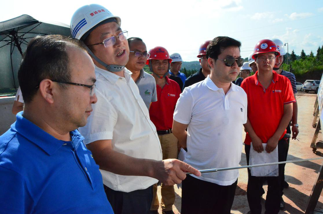 7月31日,沖刺年底通車目標,三大攻堅戰(zhàn)首戰(zhàn)“大戰(zhàn)60天”即將告一段落,奮戰(zhàn)90天大幕即將拉開大幕之際,集團董事長、總裁謝應文親臨一線,督戰(zhàn)營達項目。營達公司總經(jīng)理謝應武、指揮長甘立剛、LJ03、LJ04合同段項目負責人陪同視察。