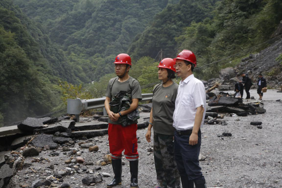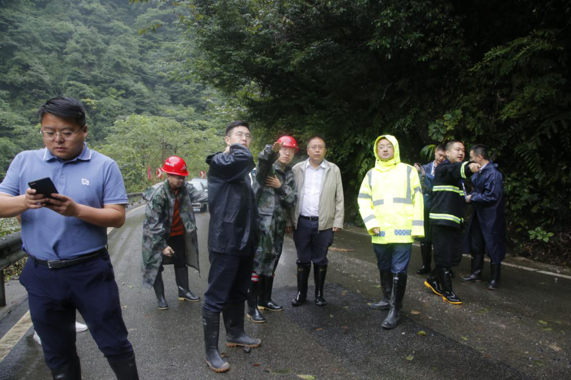 21日大邑縣縣委書記李燎等領(lǐng)導(dǎo)現(xiàn)場查看道路損毀情況