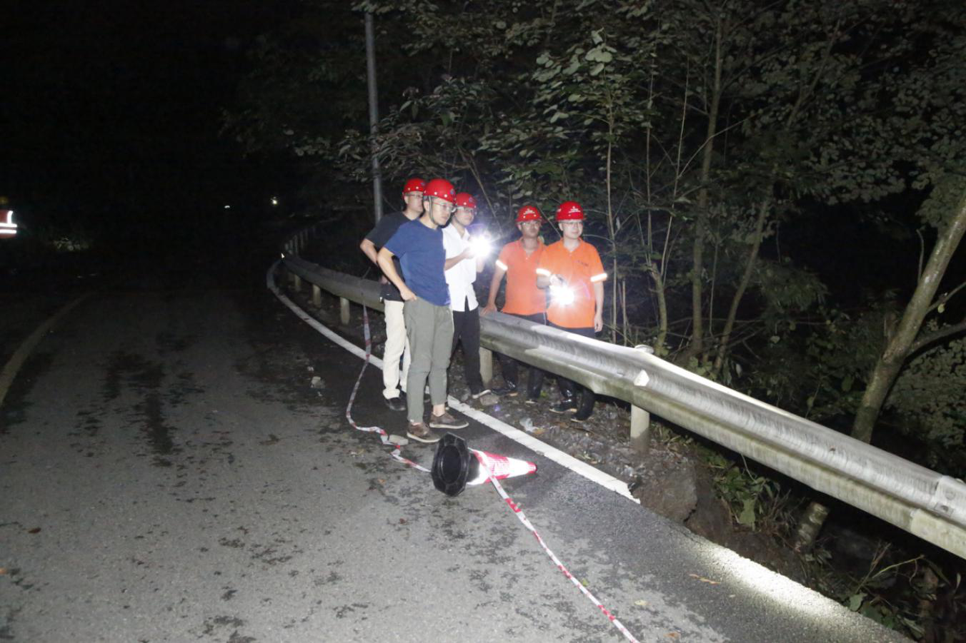 集團搶險隊伍21日夜間勘察水毀路段