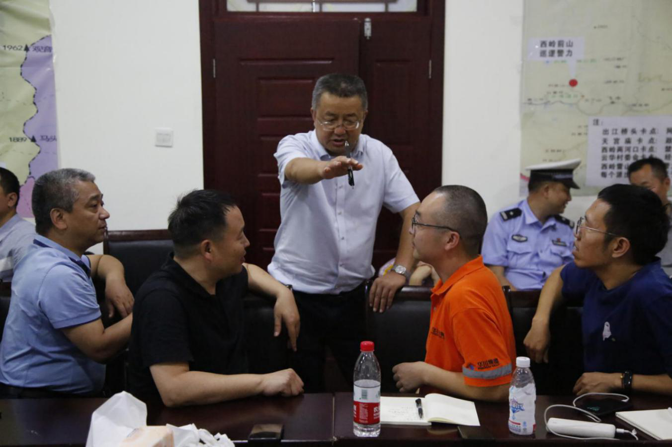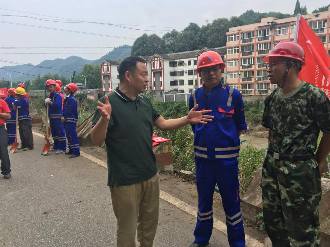 大邑縣交通局副局長陳建偉與集團應(yīng)急搶險隊討論搶險方案