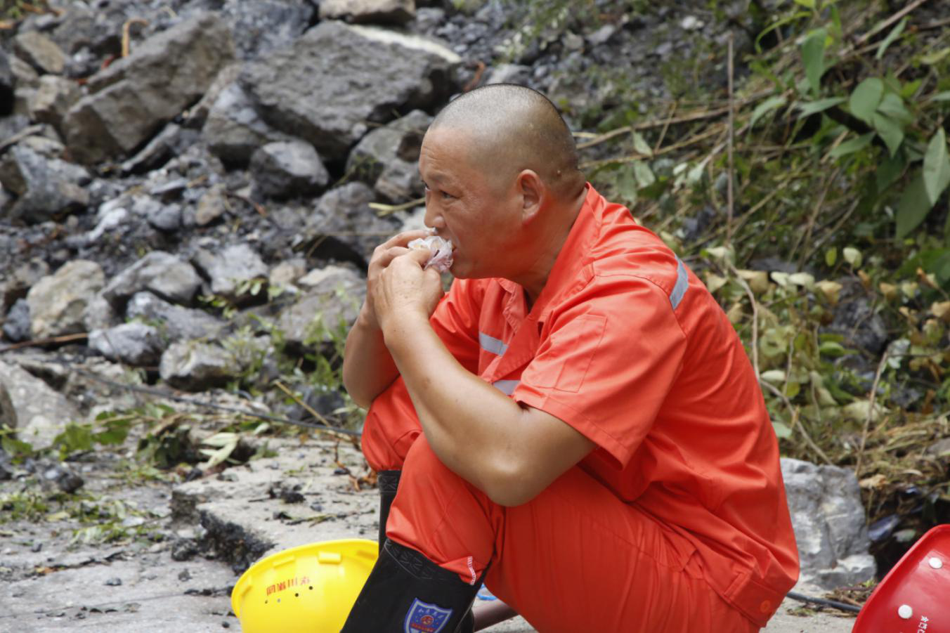 搶險任務(wù)緊張,搶險隊員無暇吃上一口飽飯