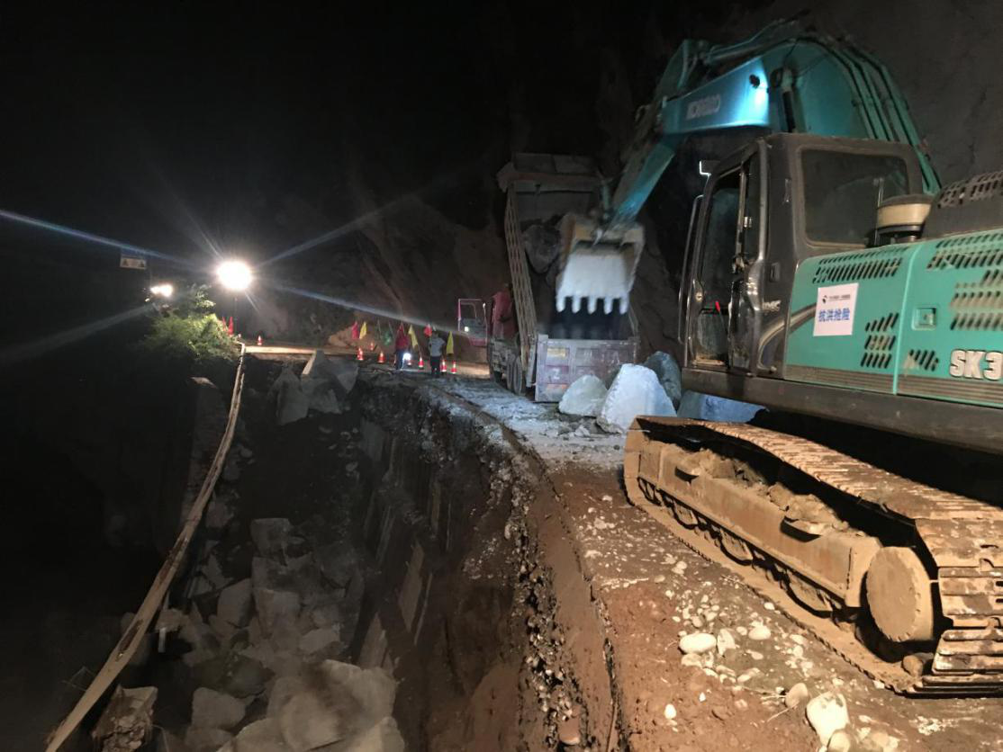 22日,集團搶險隊伍對5號山體滑坡路段進行疏通,由于后方路段損毀嚴重,重型機械無法抵達,搶險隊員們冒著不斷滾落的滑坡碎石,采用人工清理的方式,用雙手與一塊塊巨大的滑坡石體相抗,最終及時疏通出一條可供人員通行的生命通道,滯留游客和群眾于22日下午開始陸續(xù)撤離。