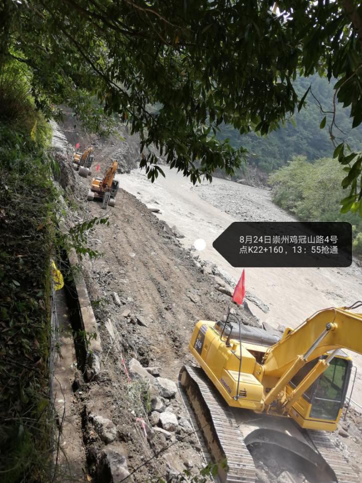 華川集團第一時間向崇州市委、政府請戰(zhàn),迅速調(diào)集搶險搶通攻堅力量開進受災(zāi)現(xiàn)場。
