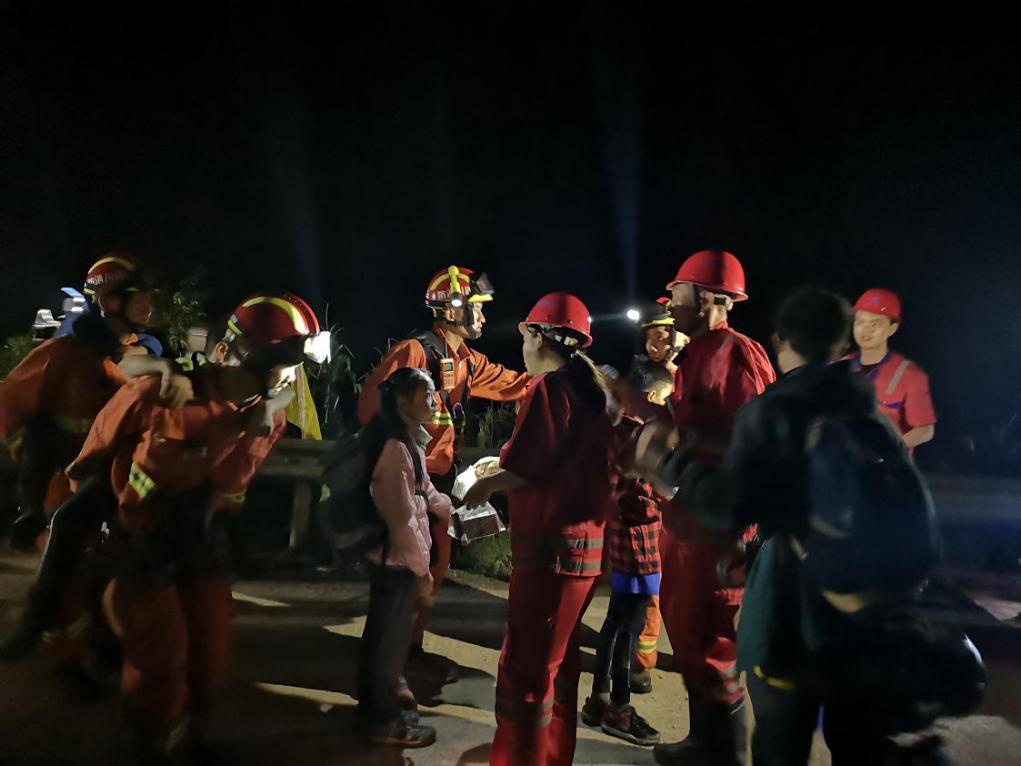 華川集團搶險隊伍護送第一批游客群眾撤離