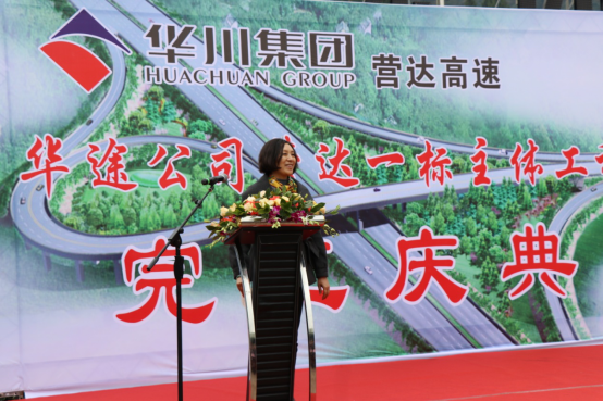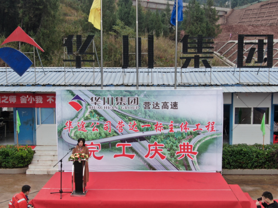 營山縣副縣長楊素梅在大會上致辭,她說:華川集團(tuán)為營達(dá)高速建設(shè)付出巨大努力,在將近3年的時間里,風(fēng)里來、雨里去,克服了征拆艱難、地材緊張、降雨量大等諸多困難,全體人員全力以赴,在較短的時間里完成了主體工程施工任務(wù)。營達(dá)高速公路的建設(shè)將對沿線人民經(jīng)濟(jì)建設(shè)注入強勁的動力。她對華川集團(tuán)頑強拚搏、信守承諾、造福社會的良好企業(yè)形象給予了高度評價和贊揚。