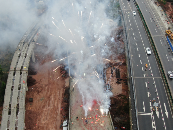 11月24日10時18分,隨著新店樞紐互通G匝道橋最后一片小箱梁被吊裝設(shè)備穩(wěn)穩(wěn)安放在最后一跨墩柱上,現(xiàn)場慶祝的煙花頓時直沖云霄,鞭炮聲、歡呼聲、吶喊聲響成一片。對于參與新店樞紐互通施工的每一個參建者來說,這是一個激動人心的時刻。新店樞紐互通最后一片箱梁順利架設(shè)成功,標志著整個新店樞紐互通主體結(jié)構(gòu)施工全面完工,提前6天完成了營達公司下達的目標任務(wù)。