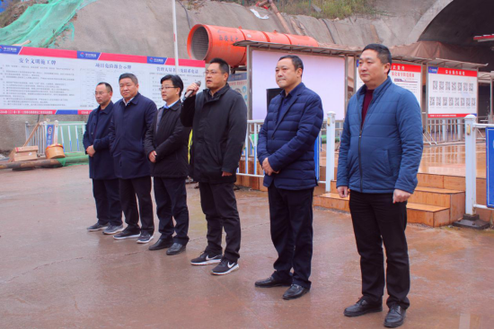 12月5日上午9時,華途公司通江項目春在隧道右洞貫通儀式在隧道出口端舉行,通江縣委書記孫輝、副書記何奎,縣長王軍、副縣長羅旭輝,縣交通運輸局、財政局等領導出席,業(yè)主公司董事長蘇川,集團副總裁楊開榮、華途公司總經(jīng)理趙君等參加了儀式。