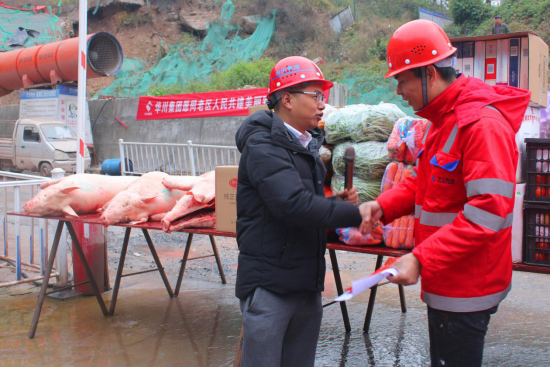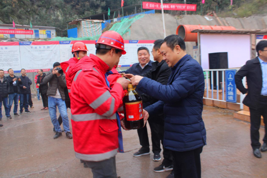 上午8點30分,縣委書記孫輝一行從隧洞進口端通行來到出口端儀式現(xiàn)場并對全體參建者及監(jiān)理代表表示了祝賀。儀式上,副縣長羅旭輝代表中共通江縣委、縣人大、縣政府對全體參建者一年多來的辛勤付出表示了感謝,羅副縣長在講話中說道:春在隧道項目是通江縣重要的民生工程,是老區(qū)人民期盼已久的幸福路、致富路、經(jīng)濟路。隧道右洞的貫通是地方政府與華川集團共同努力的結果、是服務老區(qū)人民的重要舉措、是給地方百姓送上的新年禮物。隨后,力迅公司董事長蘇川對全體參加者表示了祝賀,并就加快隧道施工進度、做好質(zhì)量安全管控、建設人民放心的品質(zhì)工程等方面對后續(xù)工程施工作出了指示。