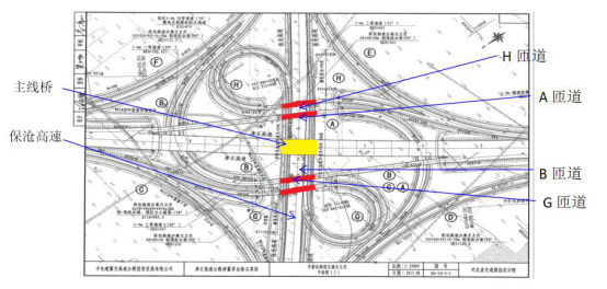 作為一個“高跨高”工程,其中有6條匝道順接保滄高速實行兩條高速公路車輛自由轉(zhuǎn)換,同時設(shè)計有5座橋梁上跨保滄高速,均采用60m跨度的鋼箱梁一次跨越,在保滄高速中隔帶內(nèi),未設(shè)置橋墩。擺在津石總包部面前有很多難題需要克服。如保滄高速交通流量大,斷交時間不足的問題;安全隱患高;賠償費(fèi)用高;大縱坡,小半徑的問題;行政主管部門要求高等問題。