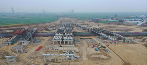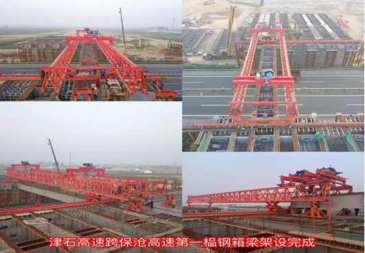 辛留佐樞紐互通位于高陽縣辛留佐村東,是津石高速全線僅有的三座跨接高速施工樞紐互通之一,主要用于津石高速與保滄高速交通流相互轉(zhuǎn)換,互通型式采用變形苜蓿葉加半直連式匝道,設(shè)計主線和11處匝道,分別上跨保滄高速5次,互通區(qū)內(nèi)設(shè)置主線橋500米/1座,匝道橋940米/4座,通道涵洞10道。鋼箱梁跨徑60米,橋梁下部結(jié)構(gòu)均設(shè)計在保滄高速路基坡腳兩側(cè),該互通上跨部分均為鋼結(jié)構(gòu)箱梁,共計14片,需要14次跨越保滄高速進(jìn)行架設(shè),其中鋼結(jié)構(gòu)箱梁最大長度為35米,總量101噸,由于要上跨河北省正在運(yùn)行的交通主干道保滄高速公路進(jìn)行施工,該項工作更是成為了津石高速JSLQ5標(biāo)的年度重點工作,同時也備受各方關(guān)注。