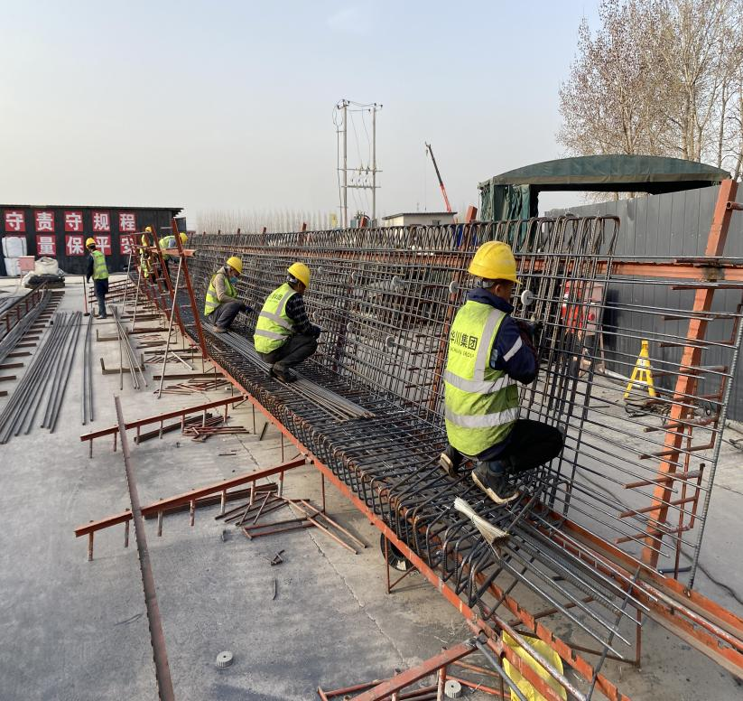 自2022年8月份開工以來(lái),項(xiàng)目部本著“開局就是決戰(zhàn),起步就是沖刺”的理念,優(yōu)化施工組織,科學(xué)部署,轉(zhuǎn)變管理思路,改進(jìn)管理方式,以賽促進(jìn)、以賽促干,激發(fā)活力。根據(jù)梁板預(yù)制工藝流程,組成了鋼筋下料加工、鋼筋綁扎、模板安裝、混凝土澆筑、養(yǎng)護(hù)張拉五個(gè)施工班組。各班組相互獨(dú)立,每道工序環(huán)環(huán)相扣,嚴(yán)格執(zhí)行“先自檢,后報(bào)檢”程序,這種班組化管理模式,大幅度提高了施工效率;同時(shí)嚴(yán)格執(zhí)行首件工程認(rèn)可制,貫徹“以工序保分項(xiàng)、以分項(xiàng)保分部、以分部保單位、以單位??傮w”的質(zhì)量創(chuàng)優(yōu)保障原則,以首件工程樣板示范,引領(lǐng)后續(xù)標(biāo)準(zhǔn)化施工,提高梁板預(yù)制水平和技術(shù)質(zhì)量管理水平。