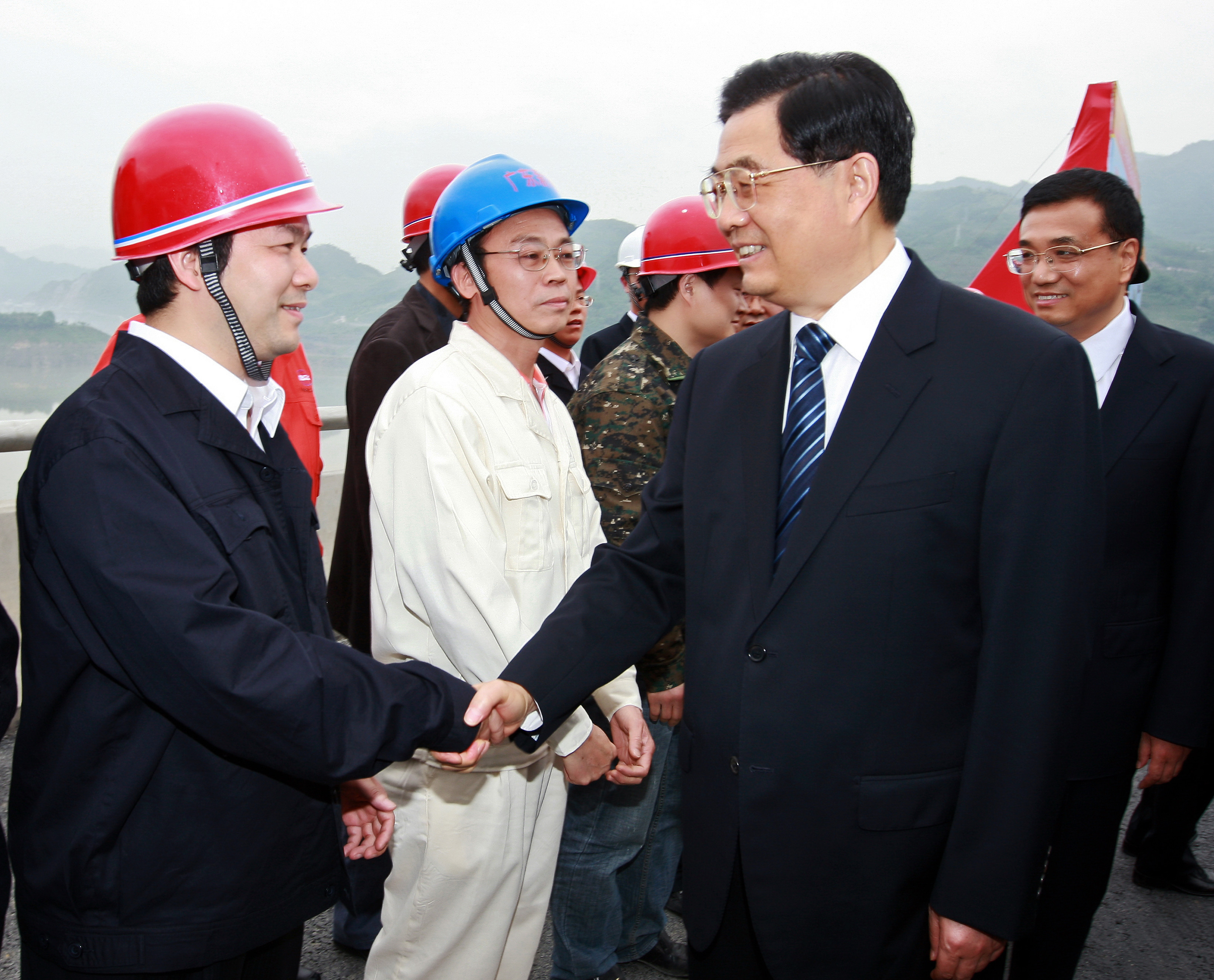 (2009年5月12日,胡錦濤總書記在參加“5.12”汶川大地震周年活動、視察災(zāi)后重建項目時,親切接見華川集團董事長、總裁謝應(yīng)文)